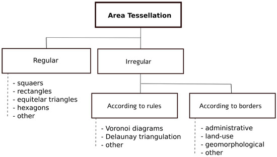 Irregular subdivision, in contrast, is based on either natural or artificial boundaries or generated analytically according to the spatial distribution of the phenomenon. Blocks are created according to rules of spatial proximity and the homogeneity of observed attributes. Commonly used approaches include Voronoi or Thiessen diagrams [