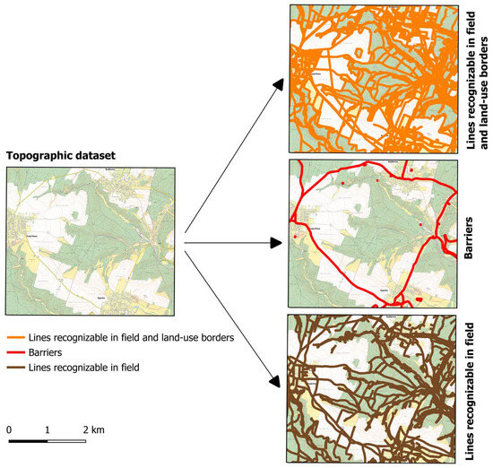 The scale and detail of the topographical dataset are critical for ensuring accurate sector division. Cartographic generalization may omit smaller features, resulting in fewer recorded objects and the creation of larger consolidated areas. For example, footpaths in forested regions are often absent on lower-scale maps, which causes forest areas to appear more extensive than they are in reality. Thus, the more detailed the dataset, the more precise the resulting division. In this study, we used the ZABAGED dataset, whose accuracy and regular updates are guaranteed by the state, though it is limited to the Czech Republic. Alternatively, OpenStreetMap (OSM) could be employed, as it provides a similar classification of geographic features [
