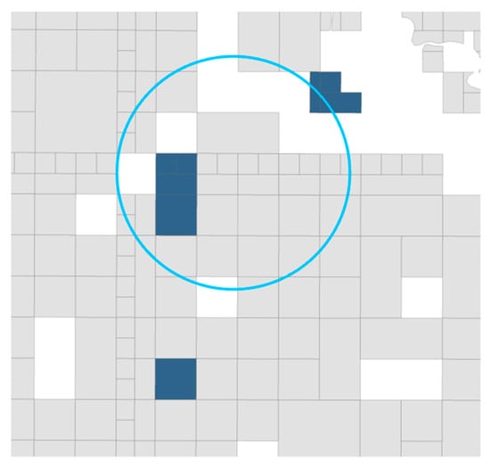One way to measure the degree of clustering or dispersal of related features in a landscape is to calculate the standard distance []; this can be done, for example, with fire stations, grocery stores, or banks in a city to obtain a relative measure of how compact or dispersed the features in those categories are. Standard distance is calculated using the distance from the centroid of each land parcel for a given category to the mean center of those parcels. The formula for standard distance is shown in Figure 3.