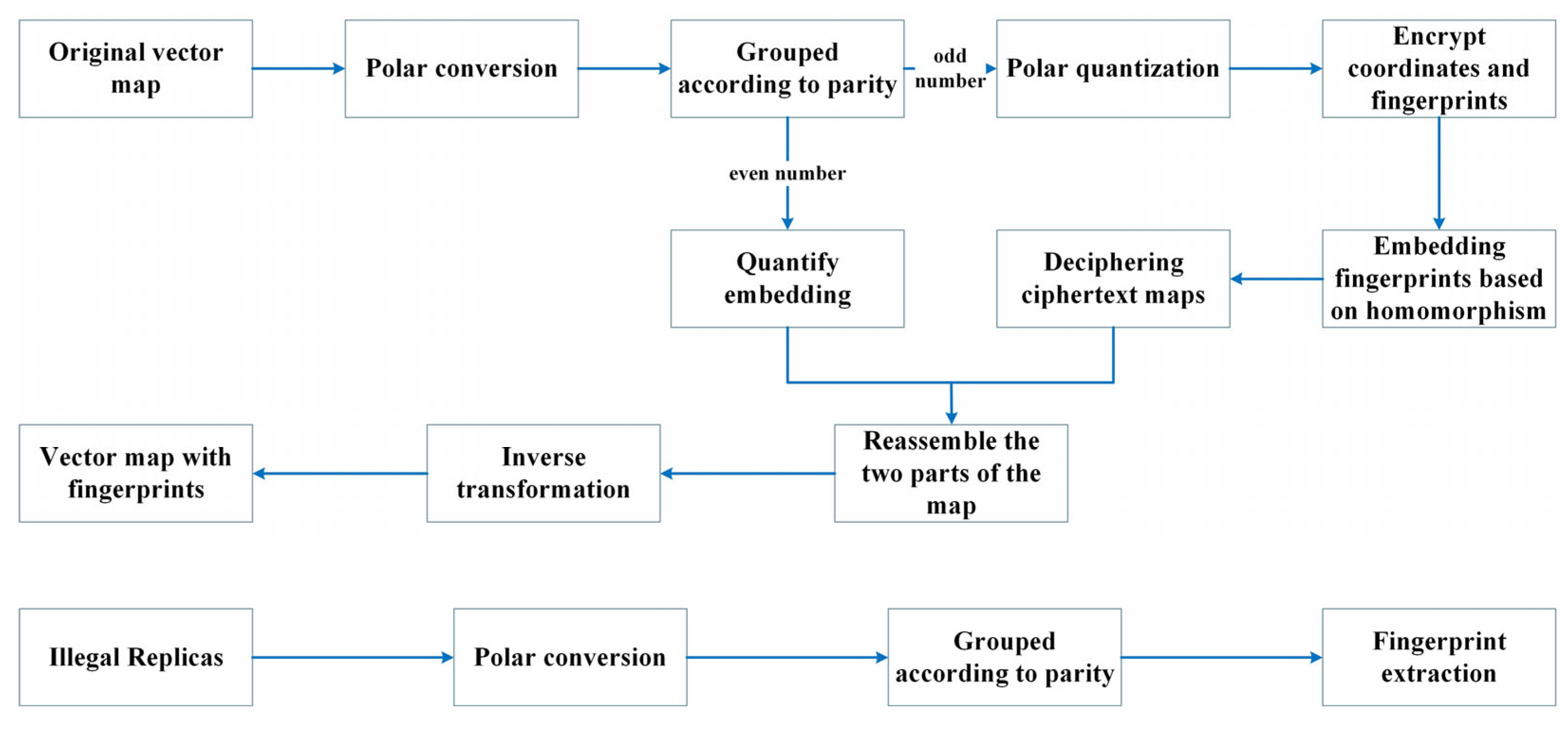 - Li, Y.; Zhang, L.; Wang, X.; Zhang, X.; Zhang, Q. A novel invariant based commutative encryption and watermarking algorithm for vector maps. ISPRS Int. J. Geo-Inf 2021, 10, 718. [Google Scholar] [CrossRef]