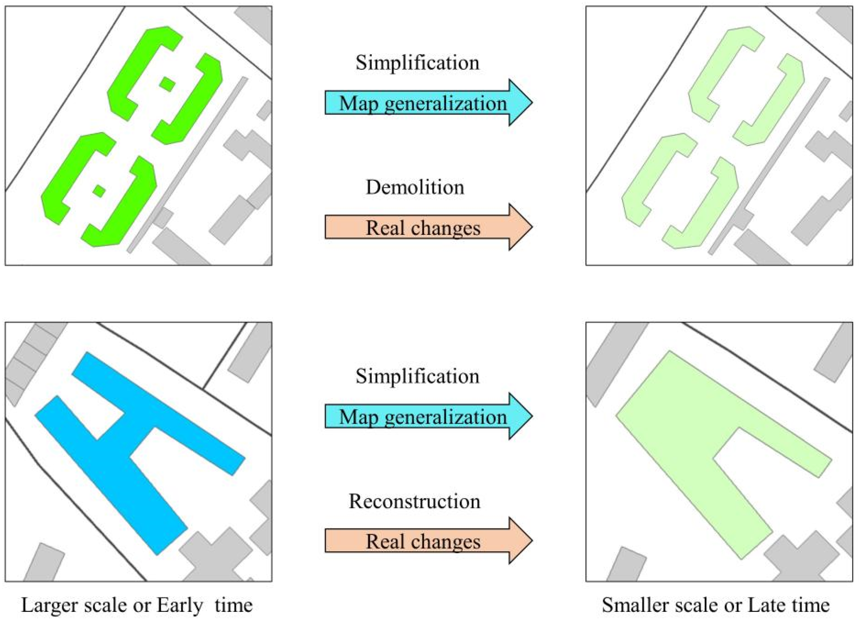 19]. Related studies have also investigated changes in building representations induced by map synthesis, distinguishing temporal updates from representational changes across scales [