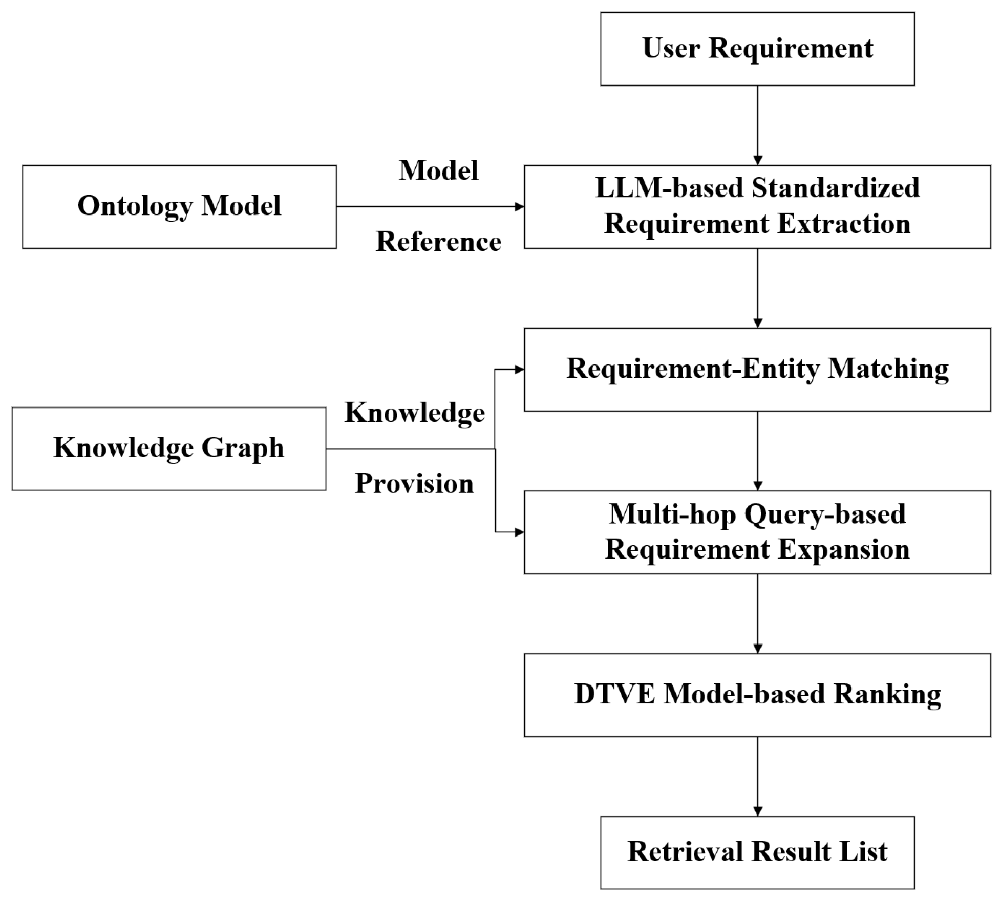 - A multi-hop query is conducted on the knowledge graph. The process starts from the entities corresponding to the original requirements and traverses along specified relationship types. All entities and relationships discovered through this query are integrated to form the associated requirements, from which a subgraph of the knowledge graph is produced.