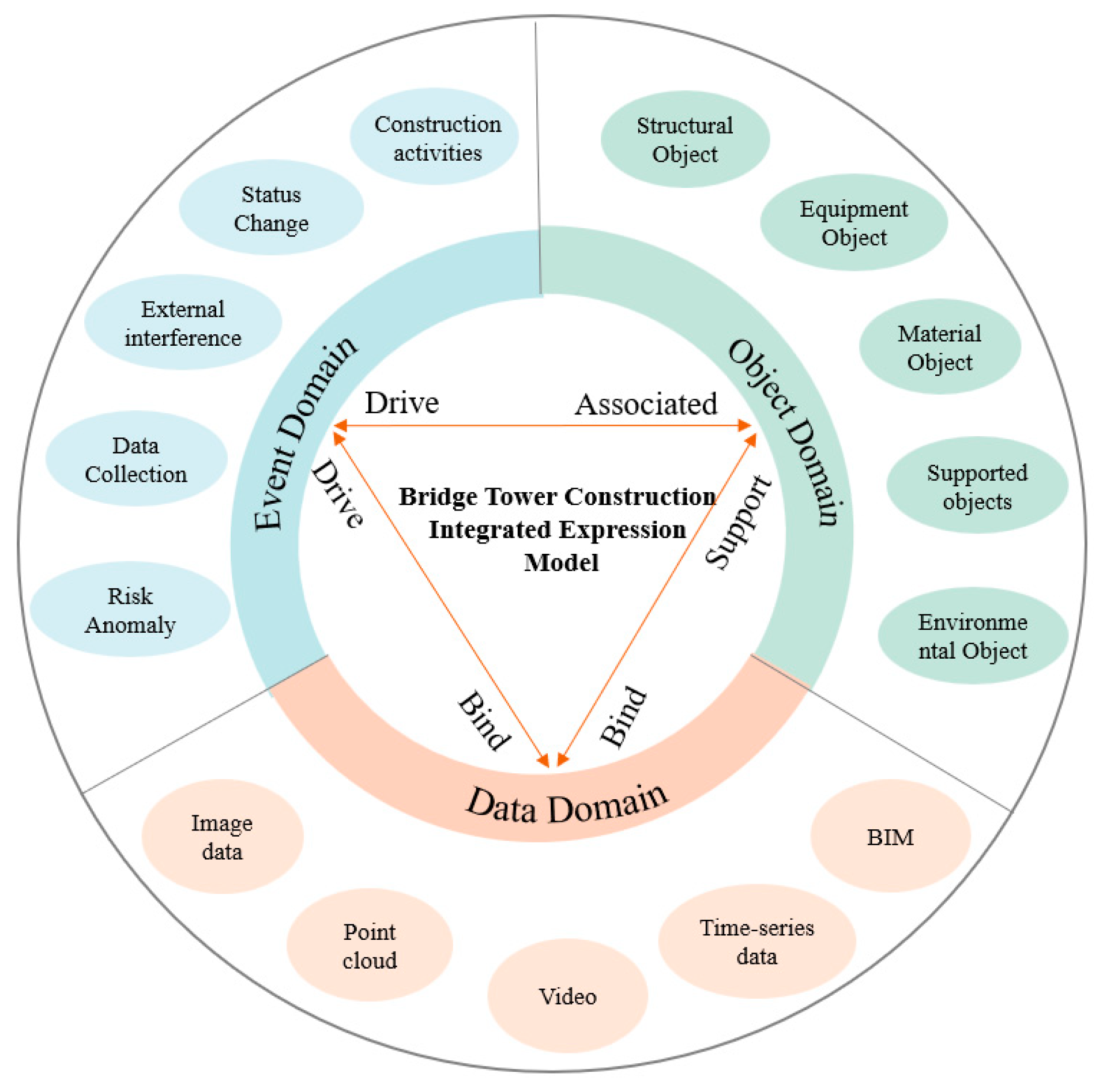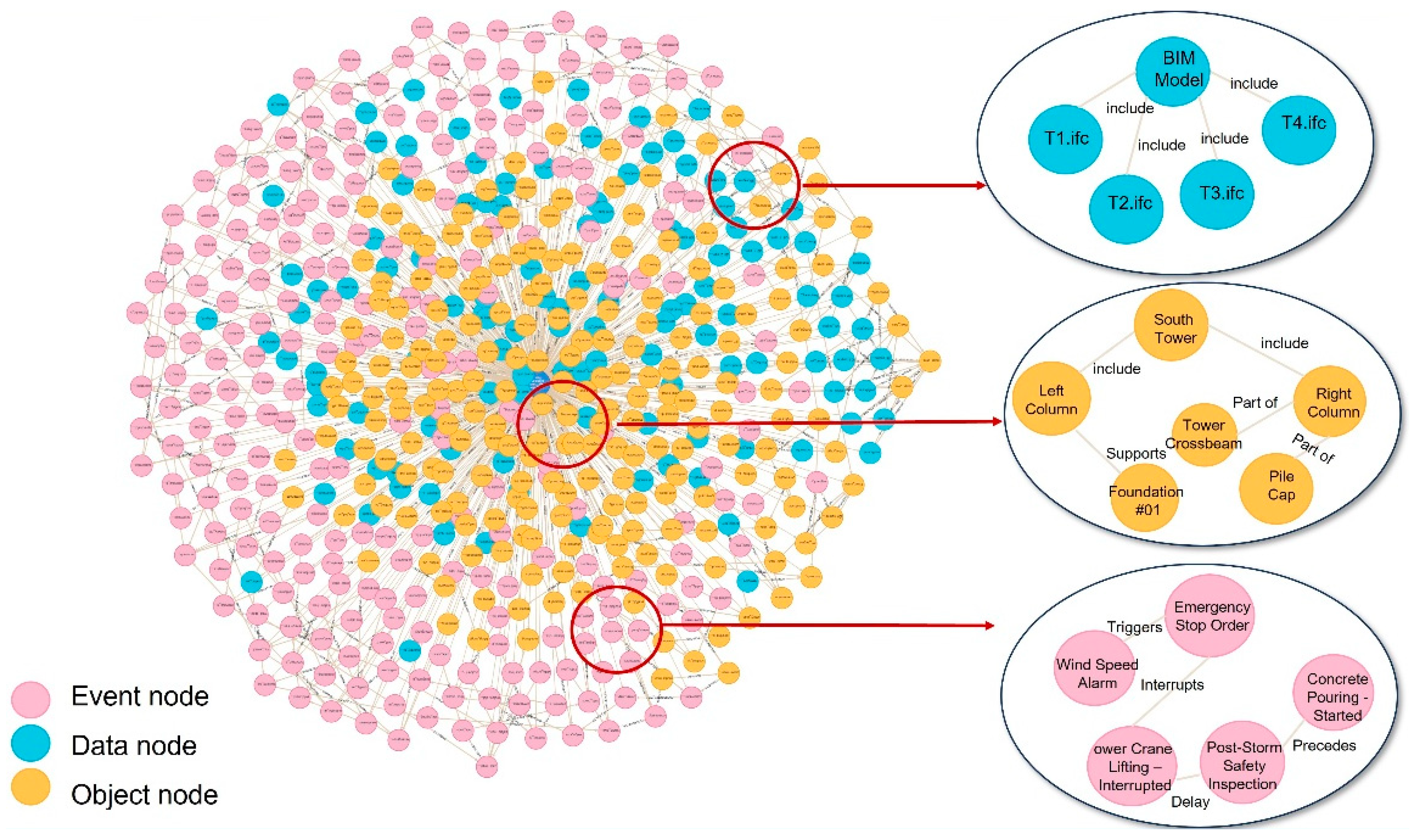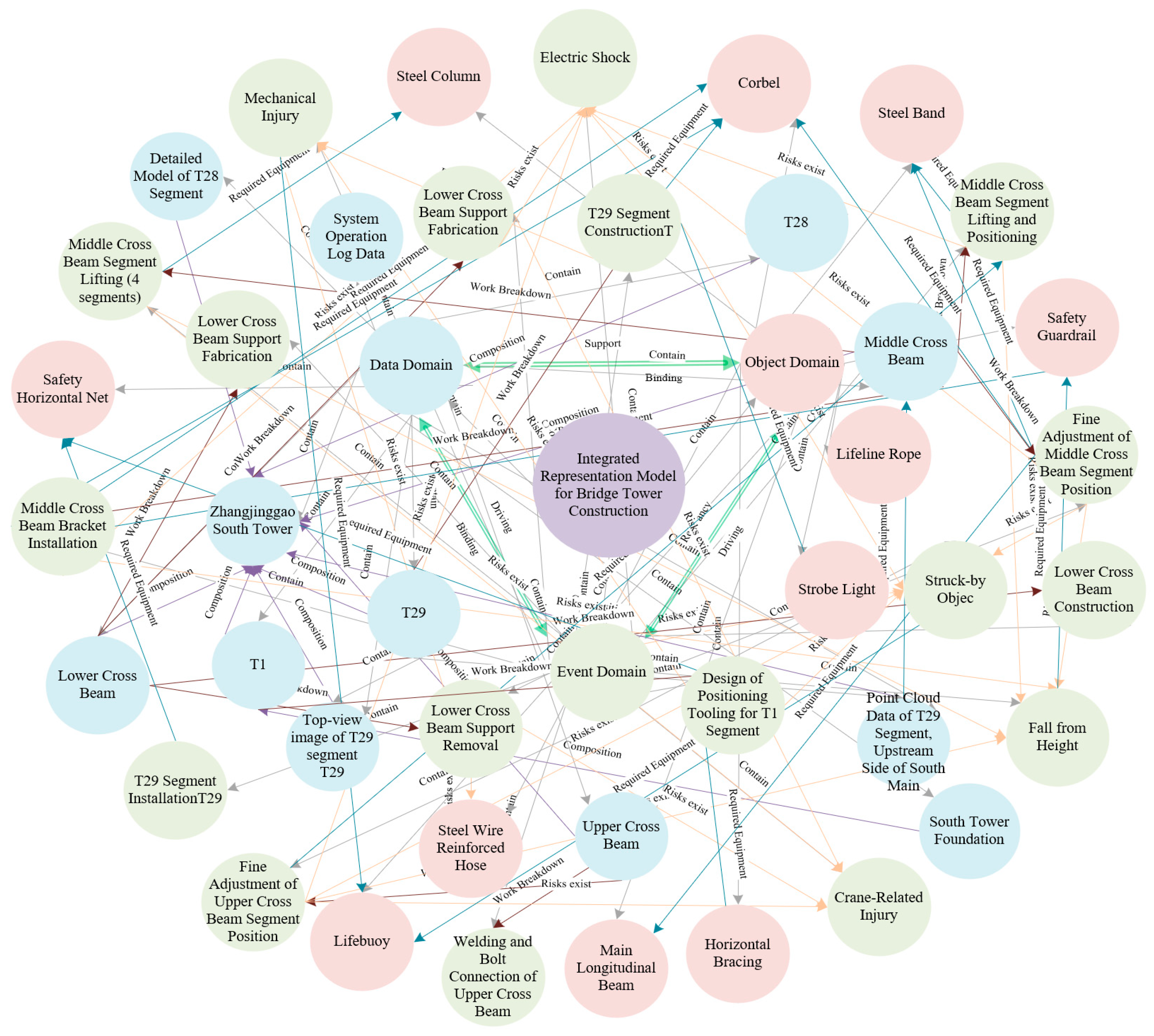 2.2. Construction of a Knowledge Graph for Bridge Tower Construction Linking the Three Domains of “Events-Objects-Data”