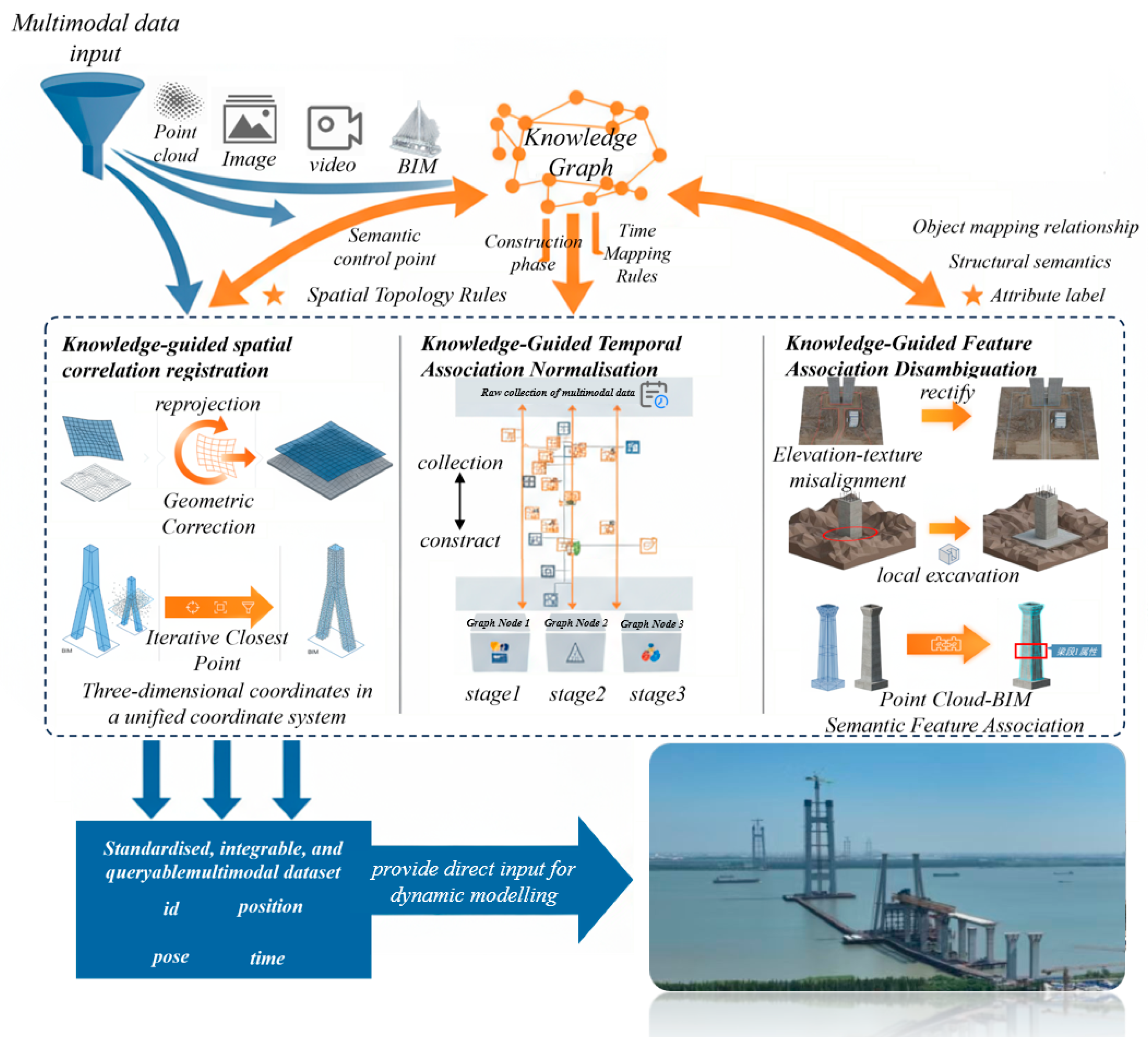 Chicago/Turabian StyleZhang, Yongtao, Yongwei Wang, Zhihao Guo, Jun Zhu, Fanxu Huang, Hao Zhu, Yuan Chen, and Yajian Kang. 2026. "A Knowledge Graph-Guided and Multimodal Data Fusion-Driven Rapid Modeling Method for Digital Twin Scenes: A Case Study of Bridge Tower Construction" ISPRS International Journal of Geo-Information 15, no. 1: 27. https://doi.org/10.3390/ijgi15010027