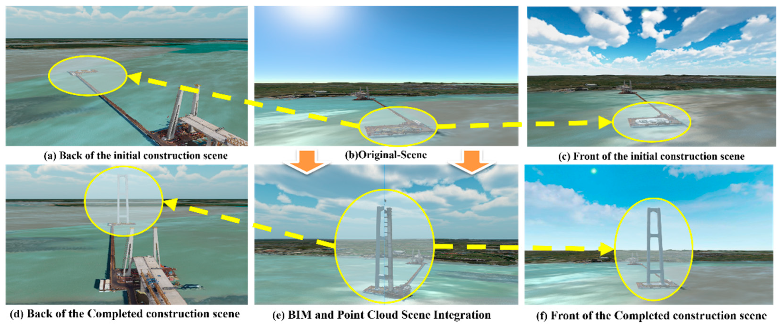 - Zhang, H.; Yan, J.; Yang, J.; Meng, W.; Chen, S. Two-stage point cloud registration using multi-scale edge convolution for digital twin-based bridge construction progress monitoring. Autom. Constr. 2025, 178, 106415. [Google Scholar] [CrossRef]