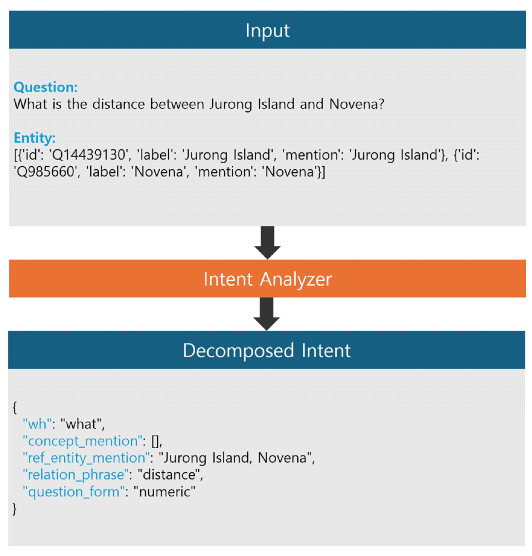 | Intent Output | { “wh”: “which”, “concept_mention”: [“church”], “ref_entity_mention”: “Perling”, “relation_phrase”: “farthest from”, “question_form”: “selection” } |