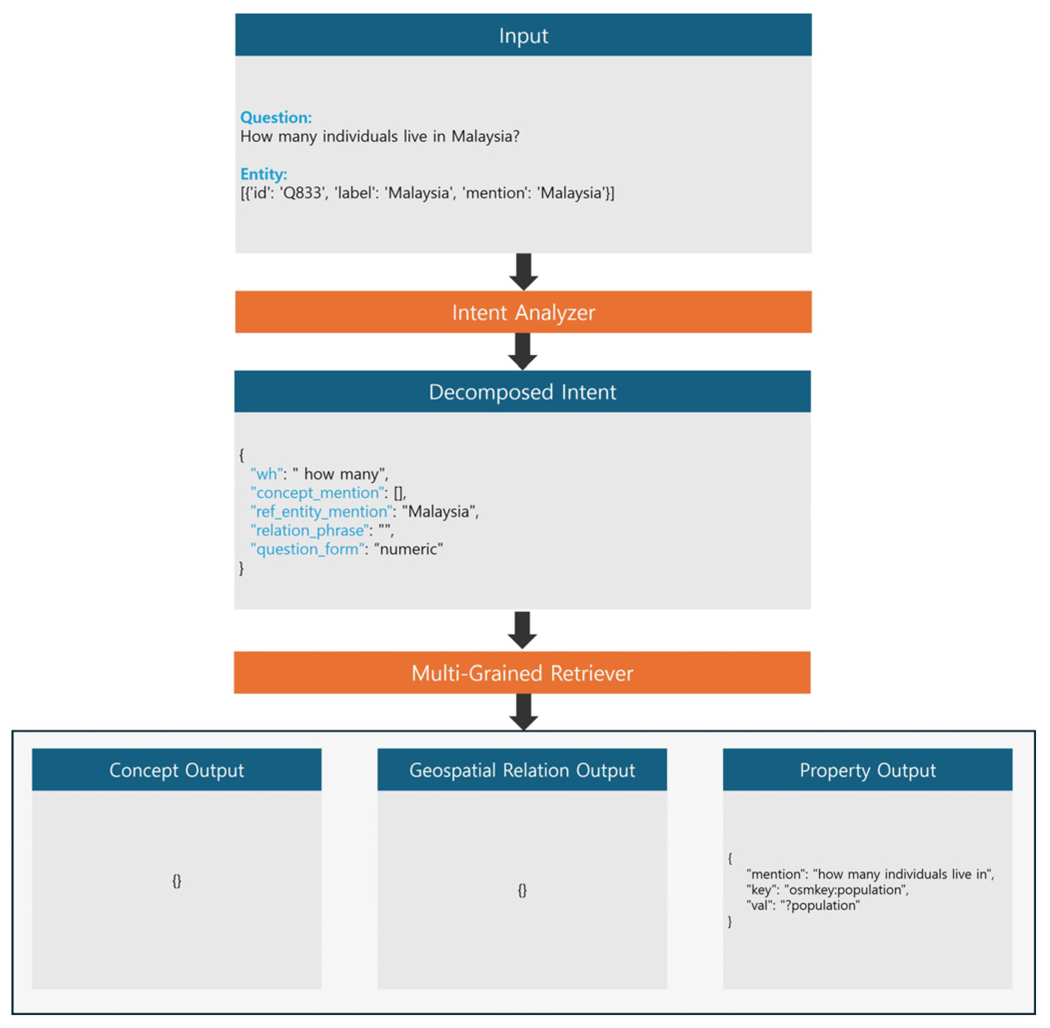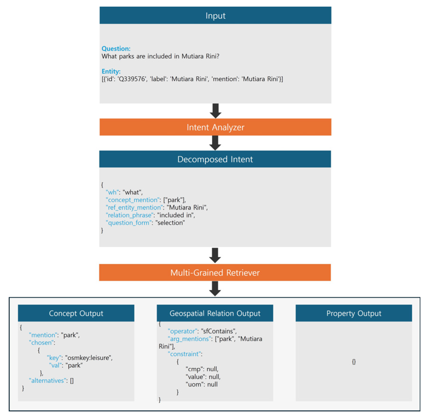 | Intent Output | { “wh”: “which”, “concept_mention”: [“river”], “ref_entity_mention”: “Teluk Danga”, “relation_phrase”: “shares borders with”, “question_form”: “selection” } |