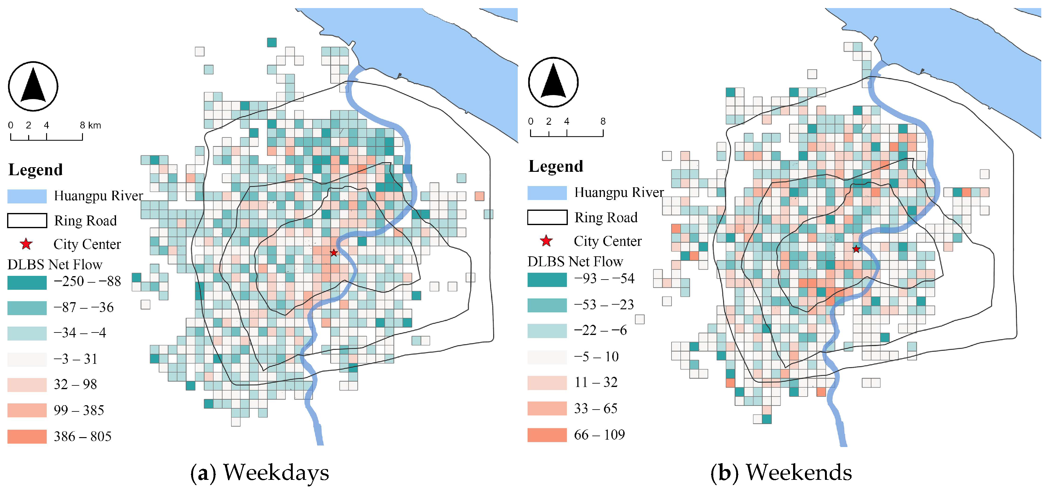 5.1. Imbalanced Spatiotemporal Patterns of DLBS Net Flow