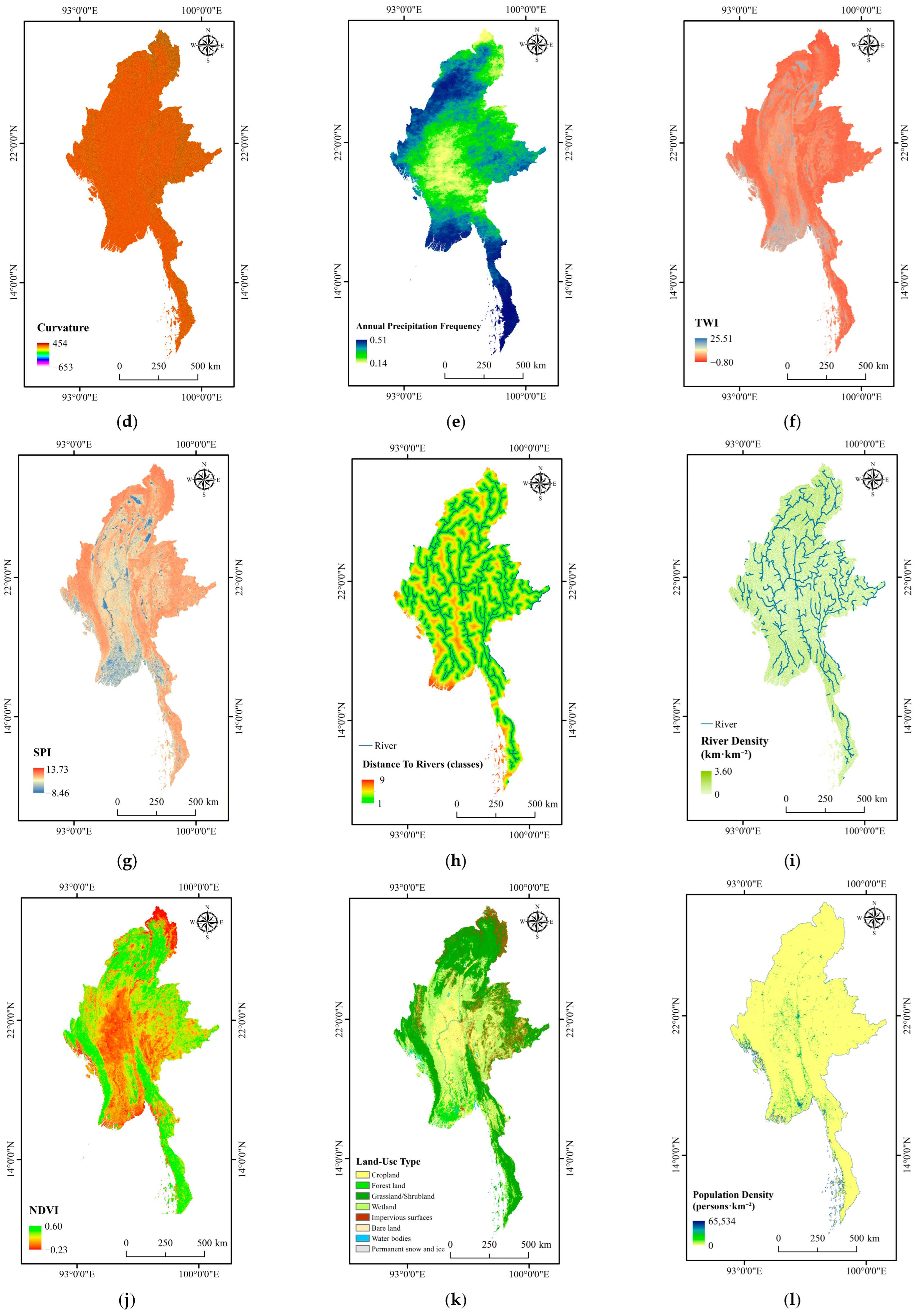 - Kalita, N.; Bhattacharjee, N.; Sarmah, N.; Nath, M.J. Estimation of flood hazard zones of Noa River Basin using maximum entropy model in GIS. Nat. Environ. Pollut. Technol. 2025, 24, B4216. [Google Scholar] [CrossRef]