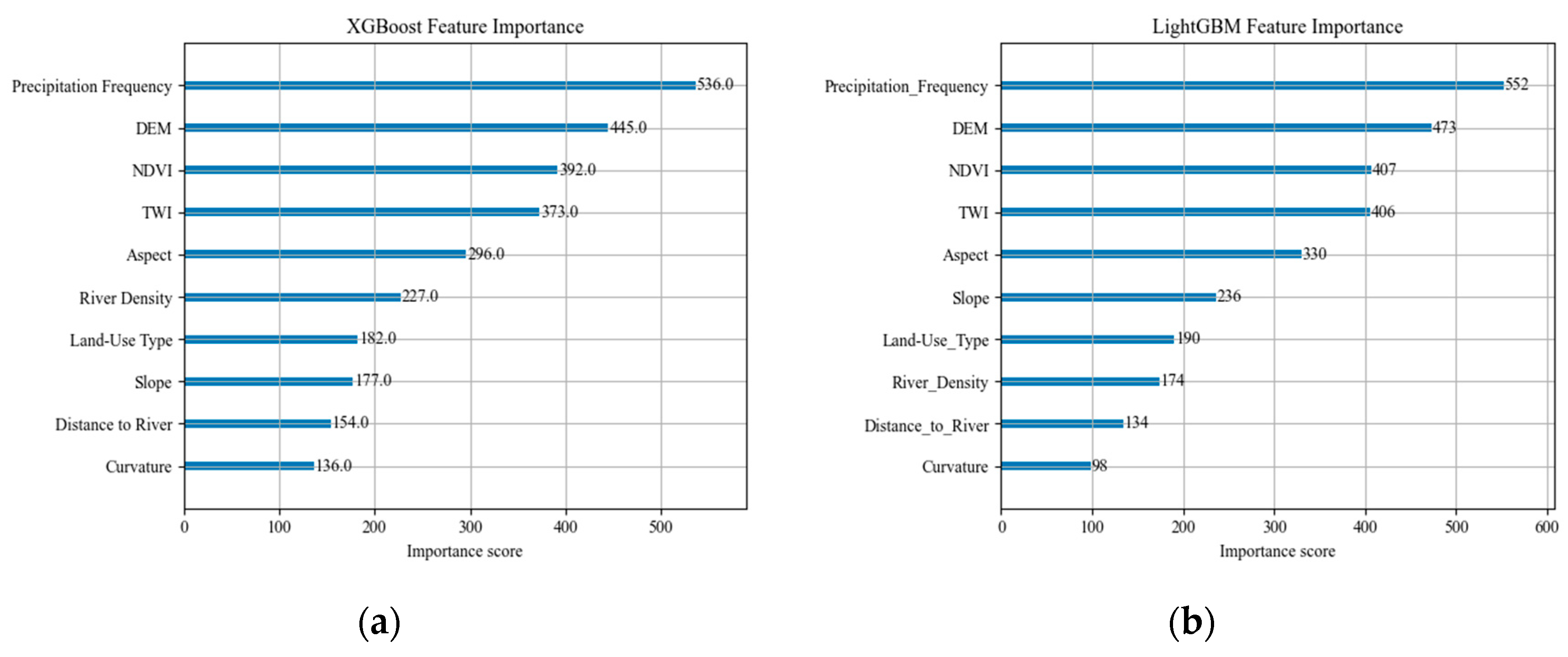 - Xu, K.; Han, Z.T.; Xu, H.S.; Bin, L.L. Rapid prediction model for urban floods based on a light gradient boosting machine approach and hydrological–hydraulic model. Int. J. Disaster Risk Sci. 2023, 14, 79–97. [Google Scholar] [CrossRef]
