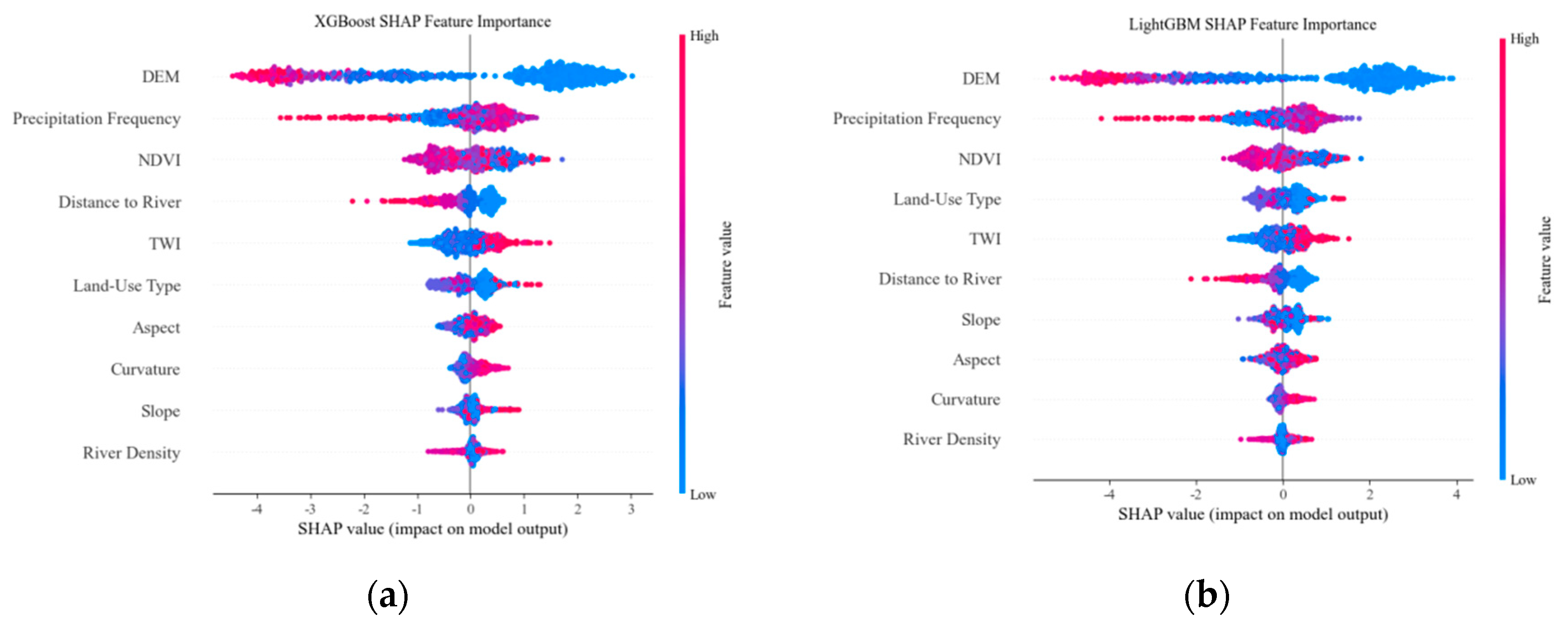 - Pradhan, B.; Lee, S.; Dikshit, A.; Kim, H. Spatial flood susceptibility mapping using an explainable artificial intelligence (XAI) model. Geosci. Front. 2023, 14, 101625. [Google Scholar] [CrossRef]