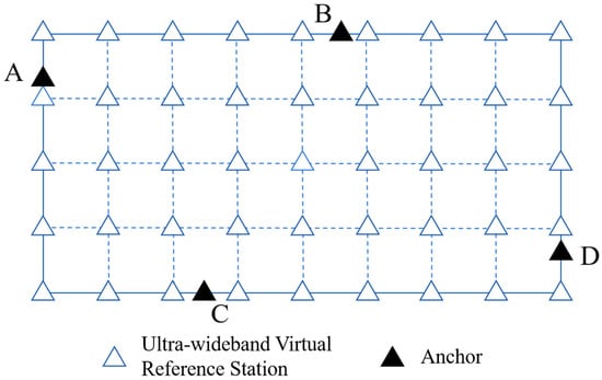 Layout diagram of virtual reference stations. Physical anchor node labels A–D.