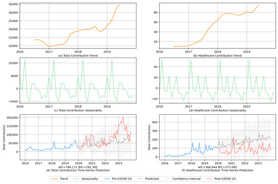 Thematic metrics measure the volume of healthcare amenity contributions and their proportion among total contribution. Figure 5 shows the distribution of thematic metrics and the comparison of mean differences between pre- and post-COVID-19 periods. Figure 6 shows the healthcare contribution and contributor proportions in the two periods.