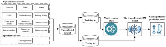 In recent years, machine learning has been used to enhance remote sensing applications by enabling the automated classification, prediction, and interpretation of large-scale and complex datasets [39,40]. Machine learning-based models can help identify hidden spatial patterns and nonlinear relationships in multi-source and multivariate datasets. The integration of remote sensing and machine learning methods has therefore improved the accuracy and efficiency of models that quantify urban heat stress and evaluate the cooling intensity of blue spaces [33,41,42,43]. Among machine learning algorithms, advanced gradient boosting machine models offer many advantages for analyzing large-scale and complex remote sensing datasets. They can handle nonlinear relationships and interactions among multiple environmental variables while maintaining high predictive accuracy [41,44]. These models are also resistant to overfitting and perform well with heterogeneous data derived from complex datasets.