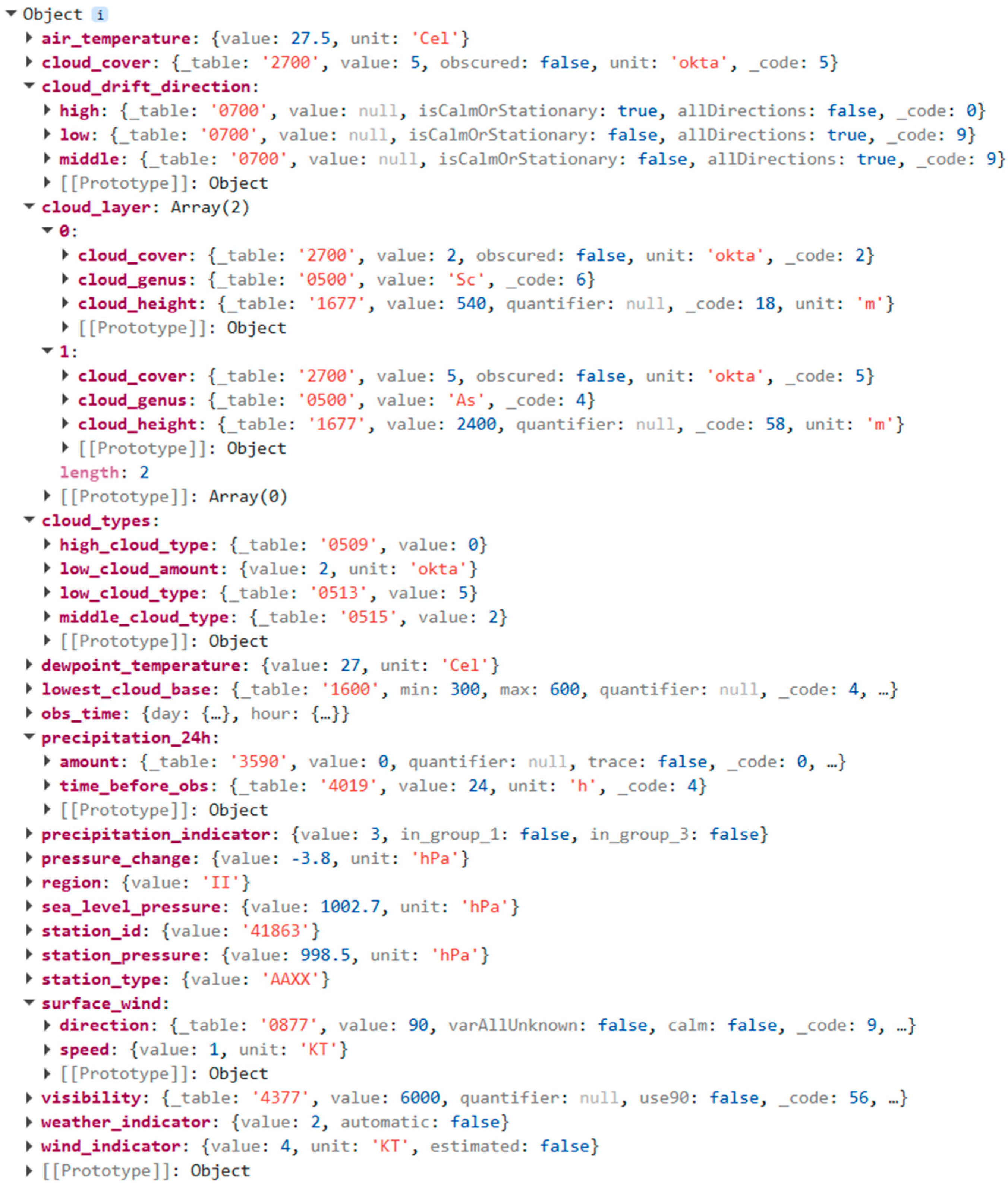 All things considered, in order to further strengthen scalability and interoperability with modern meteorological data workflows, future research should focus on exploring native JavaScript decoders for SYNOP reports and support for BUFR format. BUFR was introduced by the WMO to unify the many character-based alphanumeric standards, like SYNOP, TEMP, and CLIMAT. BUFR is defined in Volume I.2 (parts B and C) of the WMO-No. 306 document [