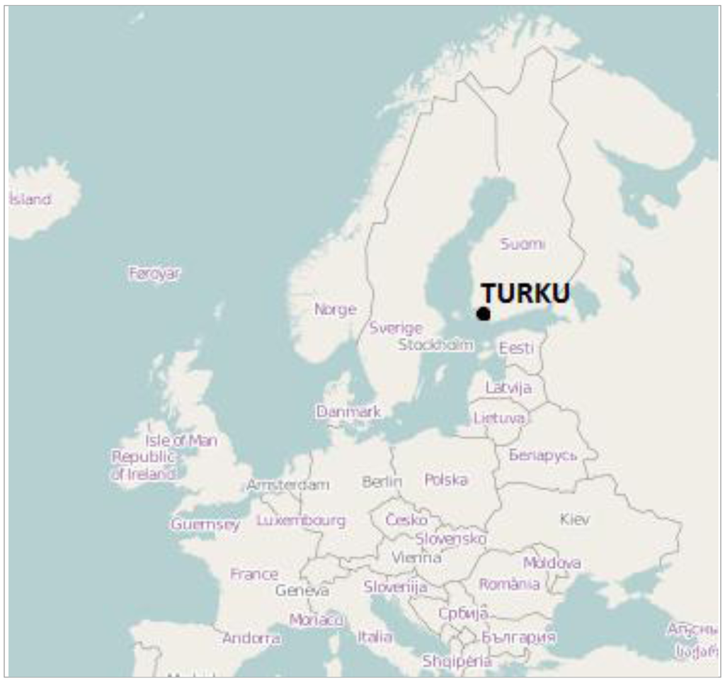 Location of Turku. Map data (c) OpenStreetMap.org contributors, CC-BY-SA.