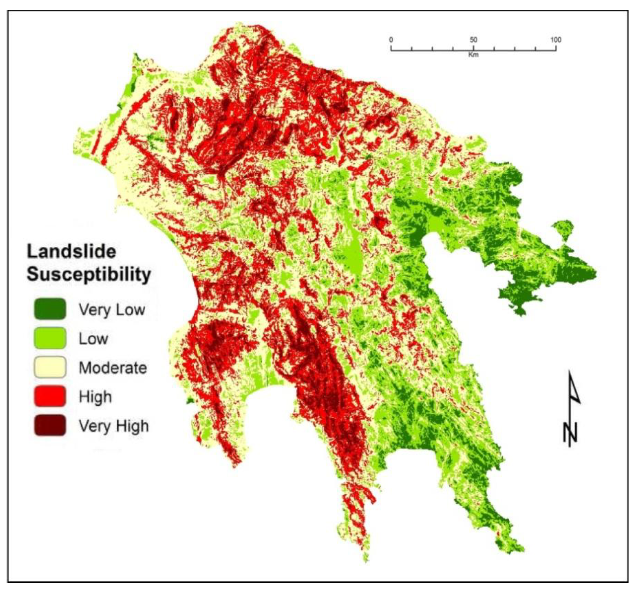This study applied an expert-based (EFW) method to prepare a landslide susceptibility map at regional scale (Peloponnese peninsula, Greece). To achieve this objective, seven conditioning factors (elevation, slope, aspect, seismicity, precipitation, lithology and land cover) were taken into consideration.