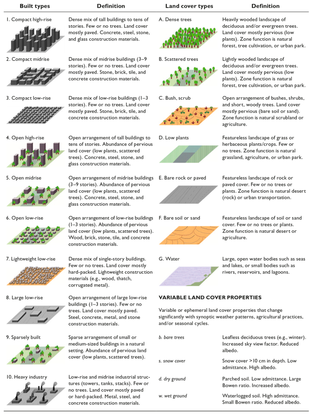 Figure 1 illustrates the 17 standard classes within the LCZ classification.