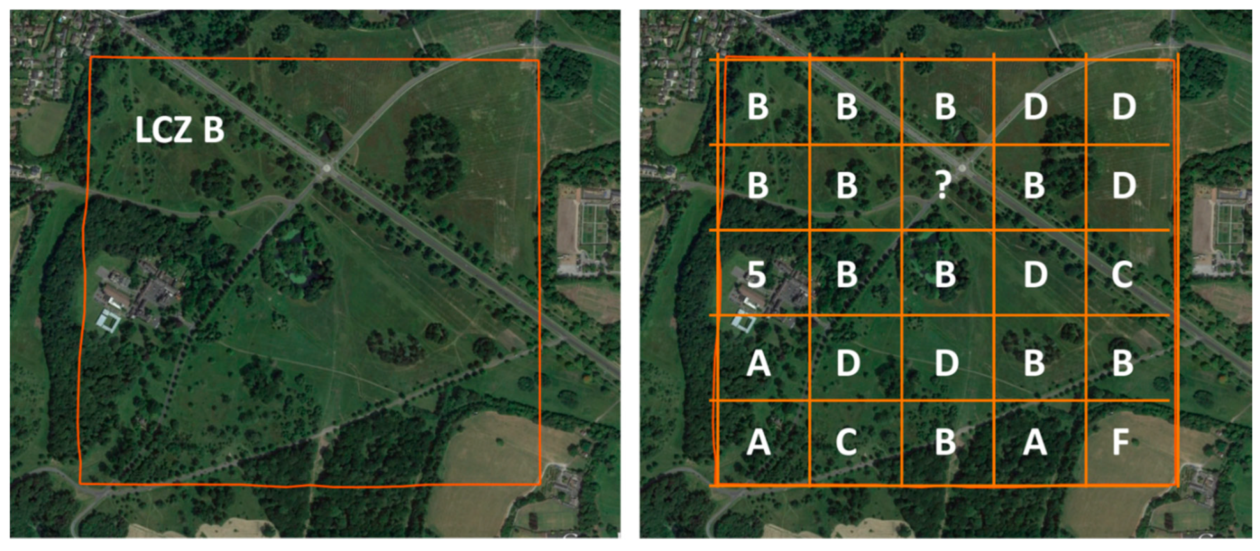 13]; this is sometimes referred to as a local (or neighbourhood scale) and lies between climatological micro- and meso-scales. This concept allows a certain range of appropriate scales, which implies different “valid” LCZ maps depending on the resolution.