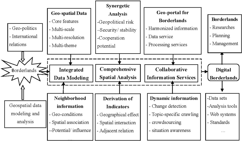 A good understanding of the nature of border regions is a fundamental necessity for well-coordinated cooperation. This depends critically on the availability of reliable information and the capacity of analysis and forecasting, as recognized by the UN paper “The Future We Want”. During the last twenty years, earth observation and geospatial information sciences (GIS) as well as enabling platforms have enhanced our capability to analyze, monitor and report on sustainable development and other key concerns. Having efficient integration and effective analysis of all the socio-economic and environmental information of a given border region will help to achieve a better understanding of its historical context, critical evolution, cooperation as well as conflict management [12]. This is a multi-disciplinary task and requires a good combination of geo-political thinking, international relation theory, geographic analysis, and geo-spatial information technology as well as some other related subjects. New concepts, methods, and algorithms as well as advanced computing platforms need to be developed.
