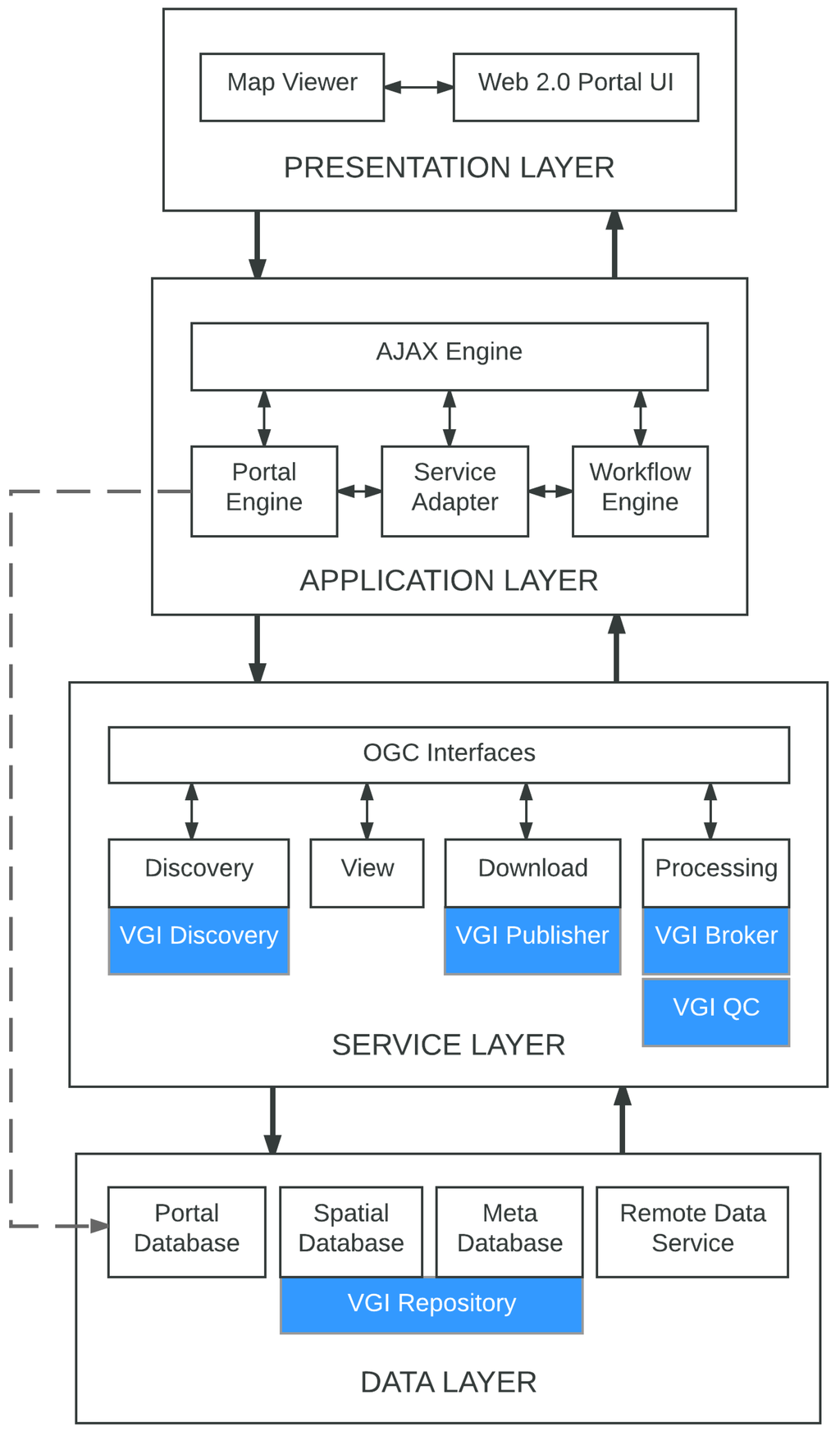 Figure 1 illustrates the conceptual overview of the VGI framework, which was developed based on the functional and architectural requirements discussed above. The VGI Broker, VGI QC (Quality Control), VGI Discovery, and VGI Publisher are the building blocks of the proposed framework.