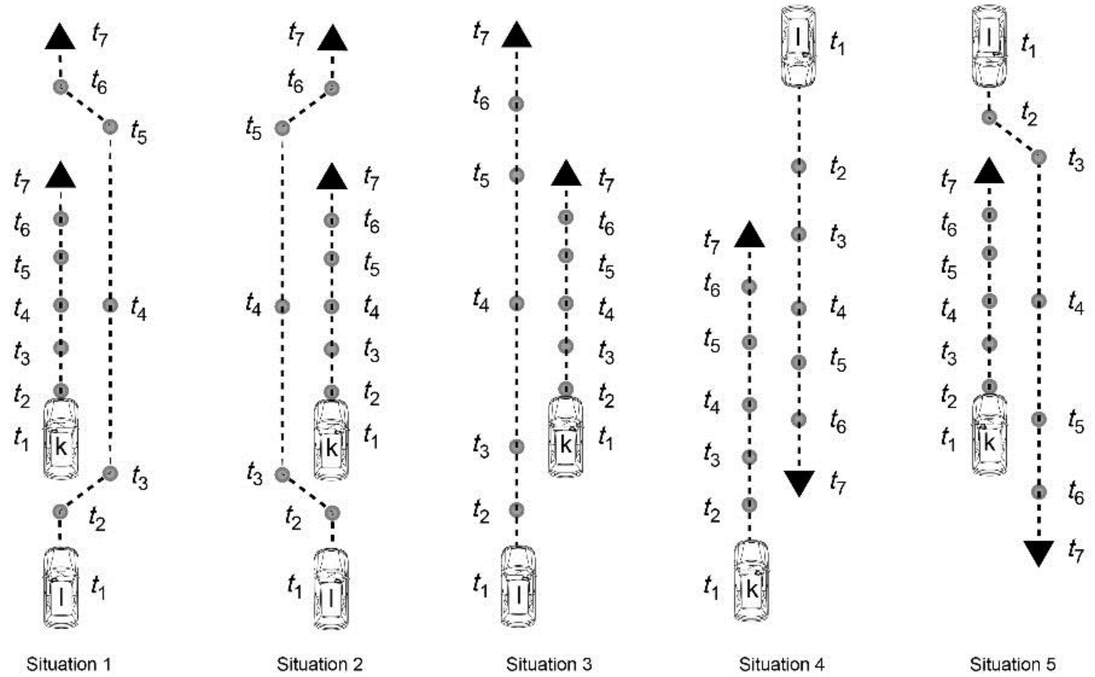 - car k is driving in the second lane and is driving behind l, which is driving in the first lane: (see Figure 2).