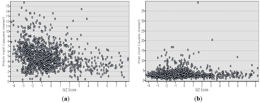 | Pitched roof | −0.01 | −0.01 | 0.02 | 0.02 | 0.36 | 0.36 | 1.00 | 1.00 | |