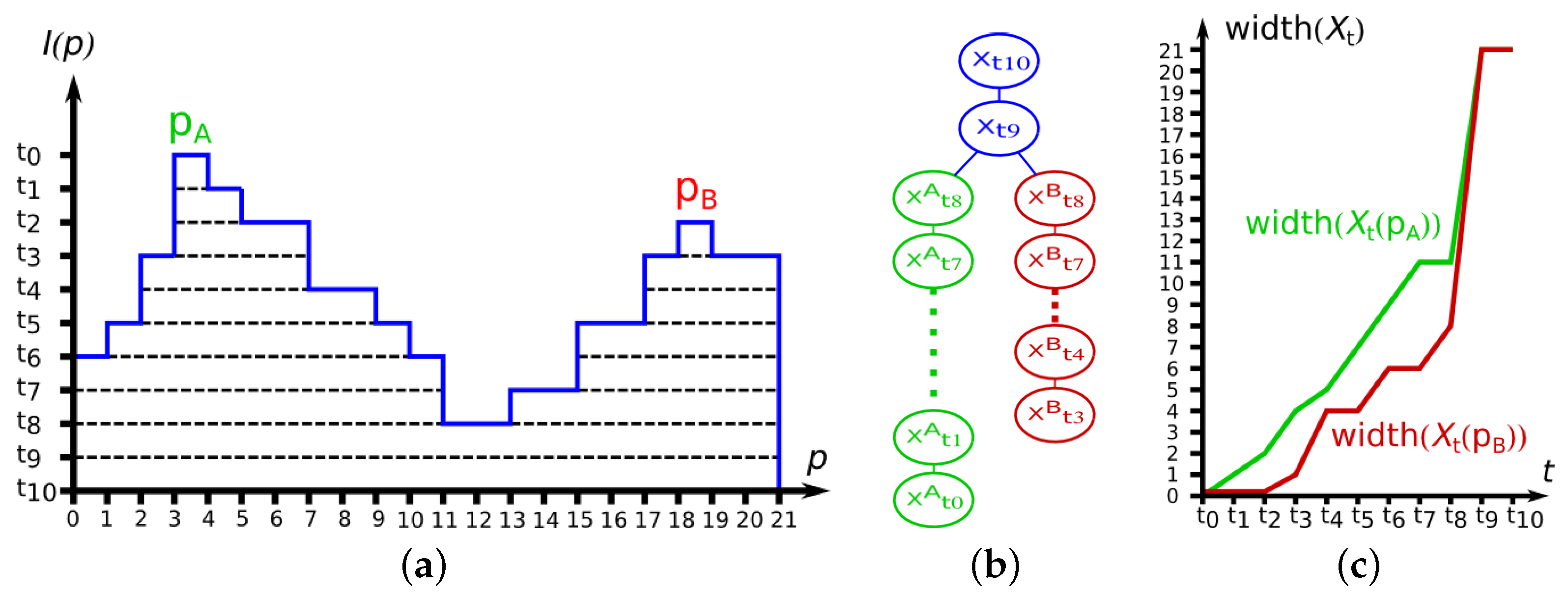 (a) 1D threshold decomposition; (b) component tree; (c) attribute profile.