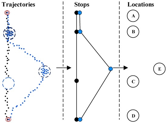 - Lv, M.; Chen, L.; Xu, Z.; Li, Y.; Chen, G. The discovery of personally semantic places based on trajectory data mining. Neurocomputing 2016, 173, 1142–1153. [Google Scholar] [CrossRef]