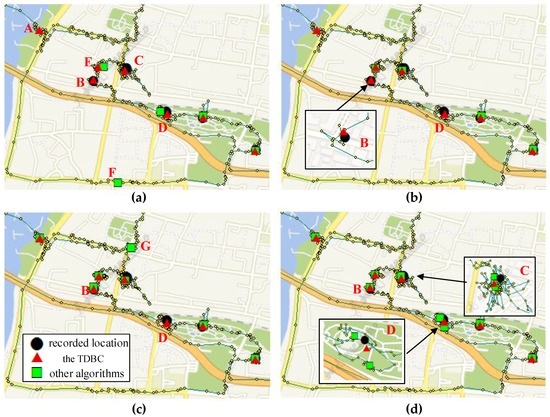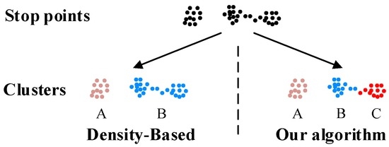 - Zhou, C.; Frankowski, D.; Ludford, P.; Shekhar, S.; Terveen, L. Discovering personally meaningful places: An interactive clustering approach. ACM Trans. Inf. Syst. (TOIS) 2007. [Google Scholar] [CrossRef]