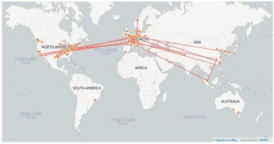 Finally, since the visualization outputs generated by bibliometric analysis tools are not very satisfactory, it is a better choice to present the analysis results by other visualization tools, such as Gephi, based on exchange files. Additionally, by constructing a geo-collaboration network, the distribution of scientific power was represented at a macro level. This allowed us to extract location-based information from bibliographic records and display it spatially and intuitively. Furthermore, more GIS functionalities, such as spatial clustering analysis, can be performed.