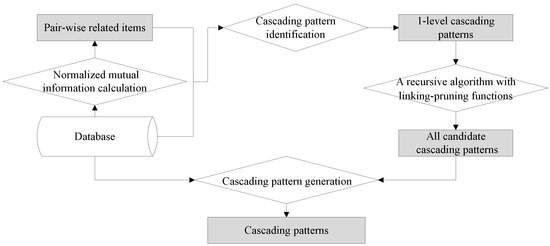 We propose an algorithm—normalized-mutual-information-based mining method for cascading patterns (M3Cap)—for mining cascading patterns by embedding normalized mutual information. M3Cap uses asymmetric mutual information from items to obtain pair-wise related items initially, which substantially reduces the number of database scans required to generate cascading patterns.