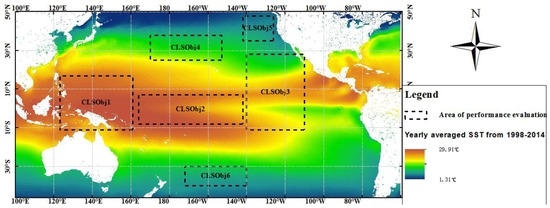 26]. Monthly image datasets with a spatial resolution of 1° in latitude and longitude from January 1998 to December 2014 for six different regions in the Pacific Ocean, which are denoted as CLSObj1, CLSObj2, CLSObj3, CLSObj4, CLSObj5, and CLSObj6 in
