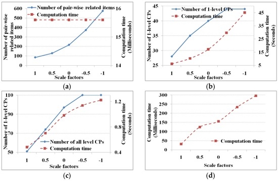 Figure 7d). Although we obtain more pair-wise related items, the computation time is almost fixed (