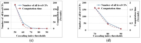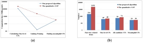 Figure 3b,c), and vice versa. Similarly, the number of candidate cascading patterns determines the number of linkings and prunings; hence, the smaller the mutual information threshold, the greater the computation time of linking and pruning (