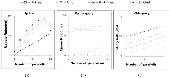 - Šidlauskas, D.; Ross, K.A.; Jensen, C.S. Thread-level parallel indexing of update intensive moving-object workloads. In Proceedings of the 12th International Symposium on Spatial and Temporal Databases, Minneapolis, MN, USA, 24–26 August 2011.