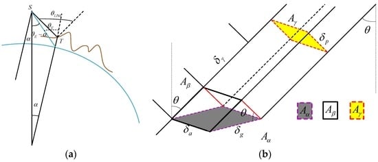 In SAR imaging areas, the ratio between scattering power Ps and incident power Pi at ground level is defined as radar backscatter β. When the target is a distributed target, each reference area gets the backscatter ratio from the backscatter coefficient. Generally, there are three reference areas (see Figure 1). The solid rectangle Aβ in the slant range as the reference area and the beta naught β0 can be expressed as [28]