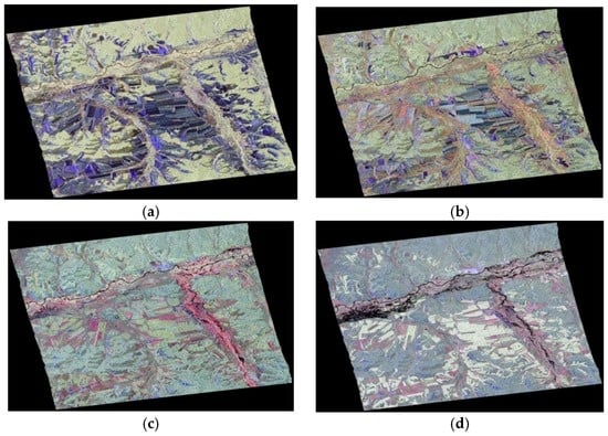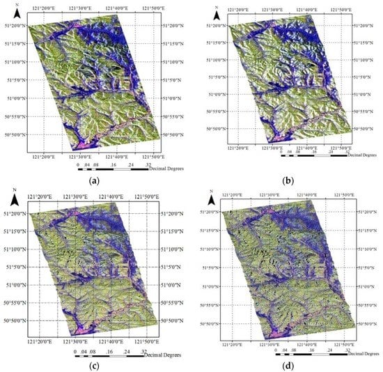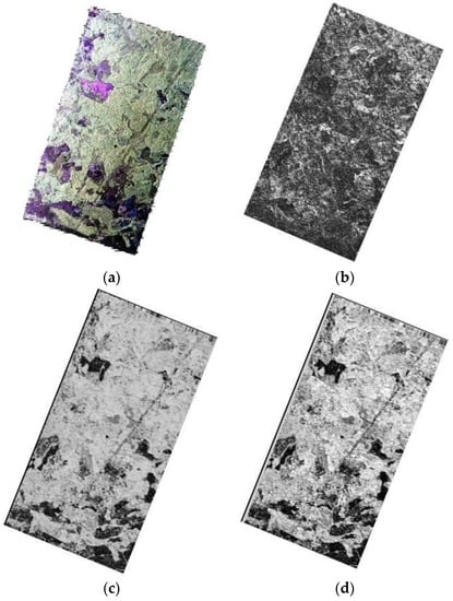 where and mean the projection vector and represents the volume scattering of the image. To separate the surface scattering g, the extended Freemen–Durden [30] decomposition is used.