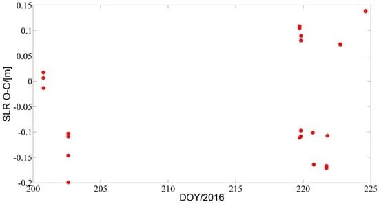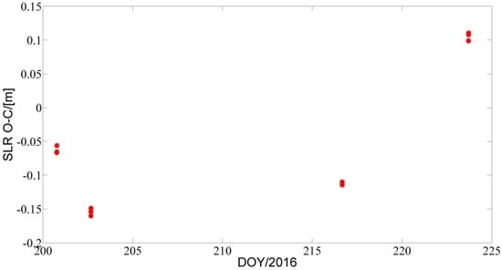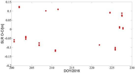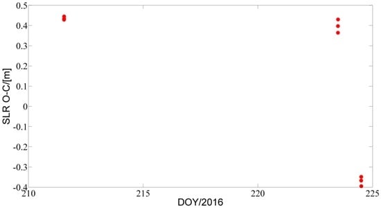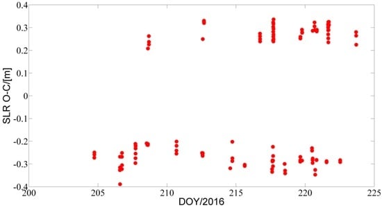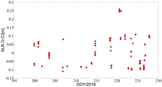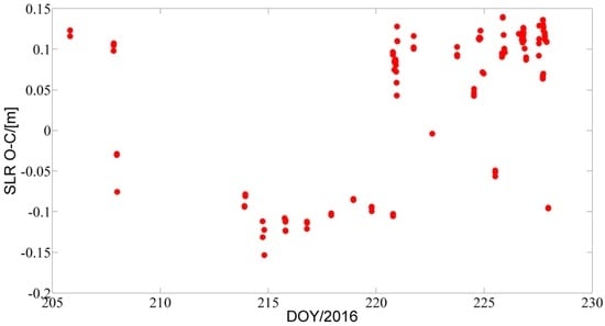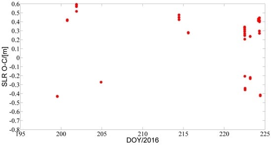 SLR is a powerful and independent technique that enables the independent validation of satellite orbits [,]. The difference between the observed SLR values and the computed distances using BeiDou satellite orbits and SLR reference station coordinates can be used to identify whether there are systematic biases or unexpected errors in the estimated BeiDou satellite orbits.
