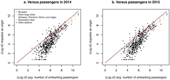 - SNCB. Nombre de Voyageurs Montes Par Gare en 2015. Available online: http://www.belgianrail.be/fr/~/media/8F764D77F60F48B188A8742652C6E48F.ashx (accessed on 9 September 2016).