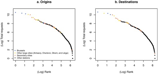 Jones, J.; Cloquet, C.; Adam, A.; Decuyper, A.; Thomas, I. Belgium through the Lens of Rail Travel Requests: Does Geography Still Matter? ISPRS Int. J. Geo-Inf. 2016, 5, 216. https://doi.org/10.3390/ijgi5110216