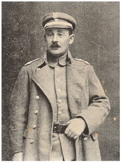 The Ornithological Gazetteer of Brazil, which has more than 6000 descriptions of sites where ornithological expeditions operated throughout Brazil, was compiled by Paynter and Traylor [,]. The gazetteer has records of site visits by known expeditioners (here, by “expeditioner” we mean a person who conducts expeditions). Tadeusz Chrostowski (1878–1923, see Figure 2), Maria Emilie Snethlage (1868–1929) and Emil Heinrich Snethlage (1897–1939) are three well-known expeditioners whose names are mentioned many times in the gazetteer. The texts of the gazetteer that mentioned the names of those expeditioners were used to experiment with our framework. For instance, the name “Chrostowski” is mentioned in 58 entries.