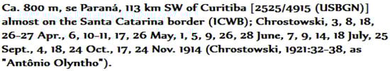 - Dicionário Geográfico das Expedições Zoológicas Polonesas ao Paraná. Available online: http://www.ao.com.br/download/polonesa.pdf (accessed on 25 March 2016).