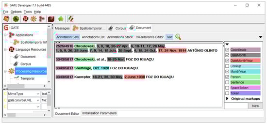 GATE (General Architecture for Text Engineering) is a text-processing platform used to develop applications that process natural language []. The platform consists of processing components that can be used for information extraction systems. GATE has various component types, known as resources, which are reusable, specialized JavaBean types, components that can be manipulated visually in a builder tool []. These resources come in three varieties: Language Resources (LRs), Processing Resources (PRs) and Visual Resources (VRs).