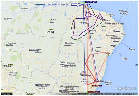 The produced expedition routes are visually analyzed to support our assumption on the attributive, temporal and spatial intersection of the expeditions. Figure 18 shows the expedition routes of Emil and Maria, as well as the possible intersection point of these expedition routes. The expedition route of Maria runs from the southeast of Brazil (Rio de Janeiro) to the northeast of Brazil (Maranhão) and intersects with the expedition route of Emil and gets back to the southeast of Brazil (Espírito Santo). Here, we can think of two scenarios about the two expedition routes intersecting at the starting location visit of Emil’s expedition: