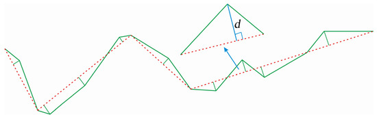 Step 3: Calculate the average offset distance between an original line and its simplified one, respectively, and get the collection of the average offset distance: . Each offset distance () of line segments can be calculated with the vertical distance between the removed point and the simplified line segment.