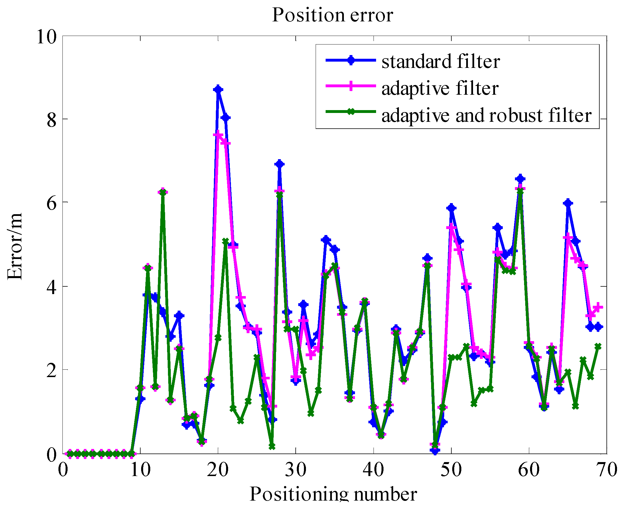 - Yang, Y.; He, H.; Xu, G. Adaptively robust filtering for kinematic geodetic positioning. J. Geod. 2001, 75, 109–116. [Google Scholar] [CrossRef]