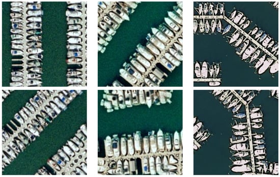 Examples of applying data augmentation on the images from the Merced dataset. The first row shows the original images, while the corresponding 45° rotated images used for data augmentation are shown in the second row.