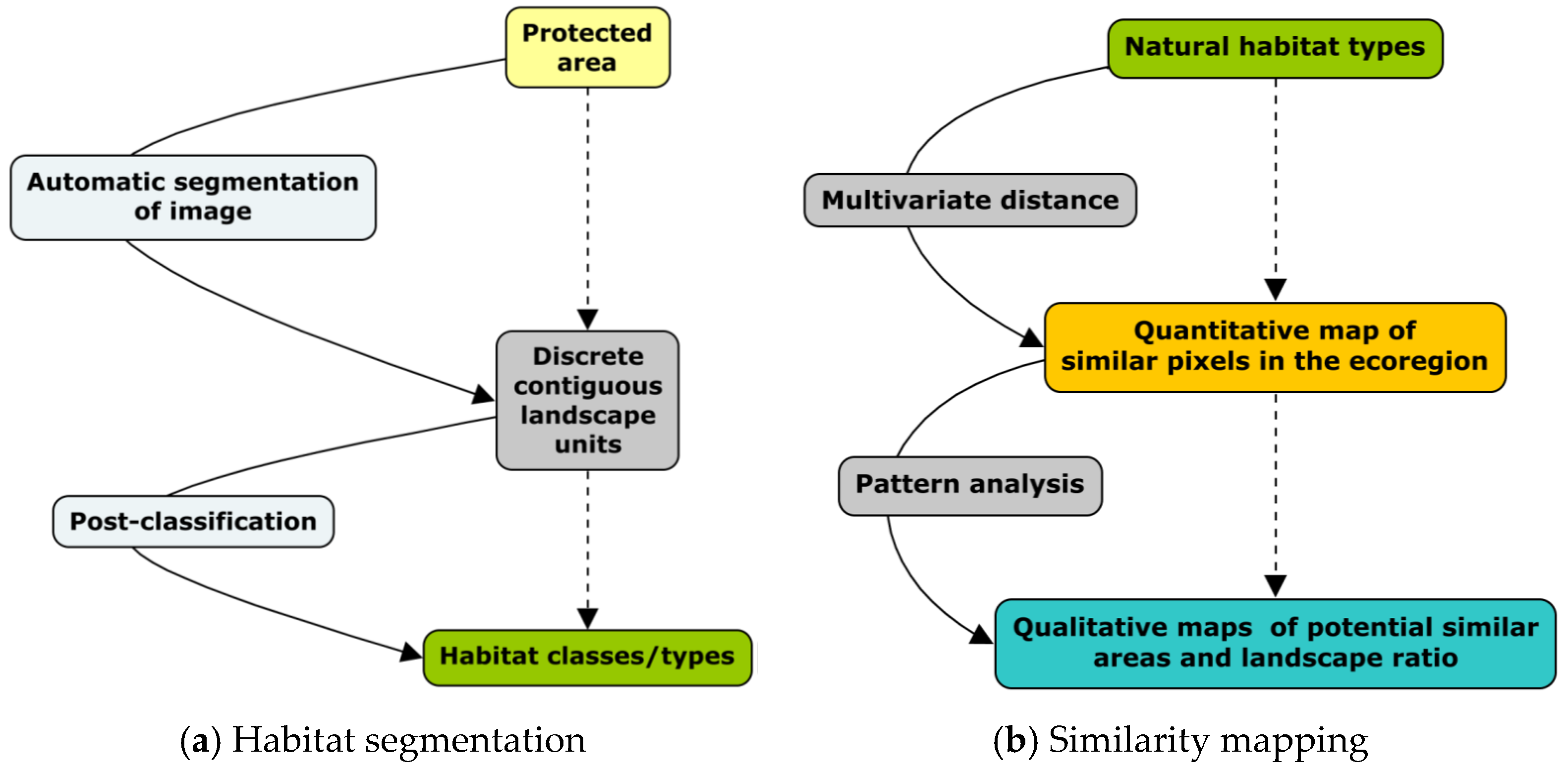 - Martínez-López, J.; Bertzky, B.; Bonet-García, F.J.; Bastin, L.; Dubois, G. Biophysical characterization of protected areas globally through optimized image segmentation and classification. Remote Sens. 2016, 8, 780. [Google Scholar] [CrossRef]
