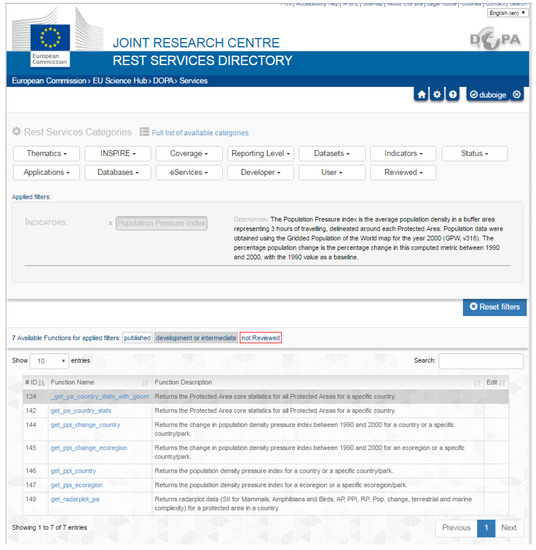 The DOPA REST Services Directory can be consulted online (Figure 8) and is continually updated at [48] (open access, registration required).